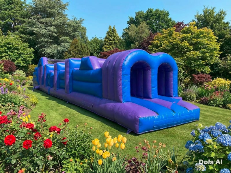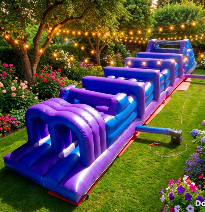 Make your event unforgettable with our vibrant Purple & Blue Children's Inflatable Obstacle Course with Slide - an impressive 50ft-long inflatable that delivers high-energy entertainment from start to finish. Designed to capture attention and keep children fully engaged, this eye-catching inflatable measures 14ft wide x 50ft long x 12ft high, making it a true showstopper at any celebration.