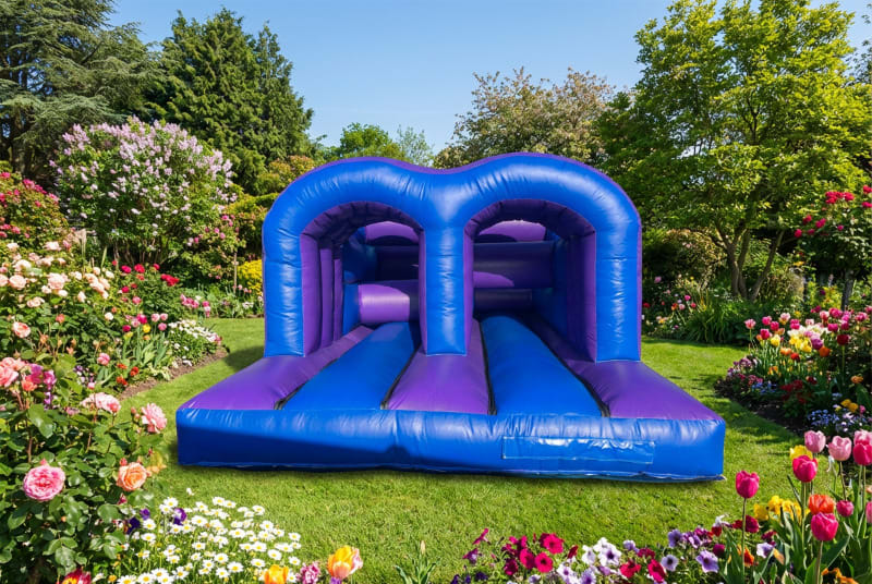With its bold purple and blue colour scheme, this obstacle course instantly stands out at birthday parties, school fun days, community events, charity fundraisers and family celebrations. The bright, cheerful design creates a fun and inviting atmosphere that children are naturally drawn to, making it the perfect centrepiece attraction.
